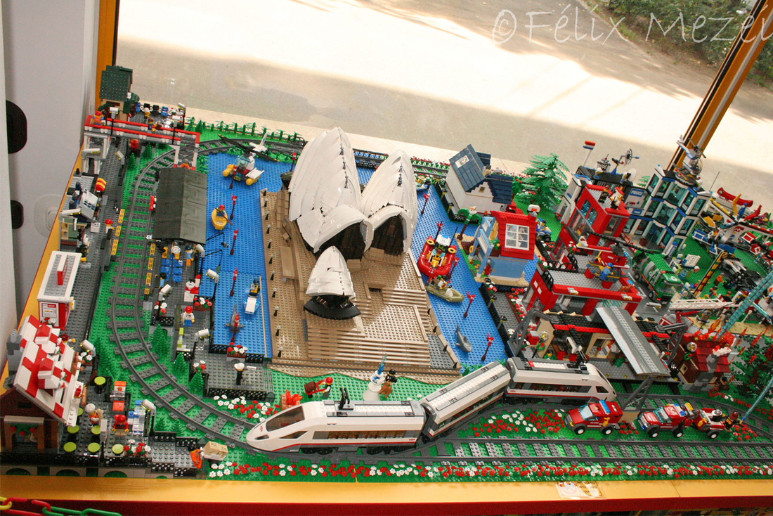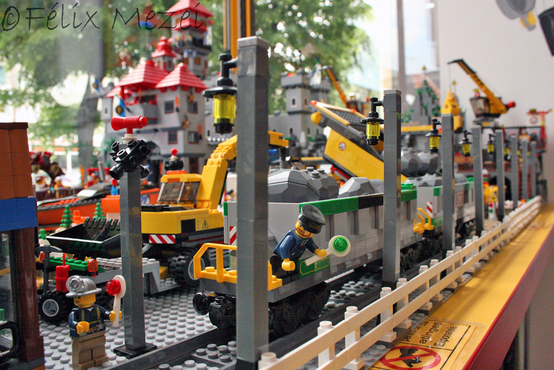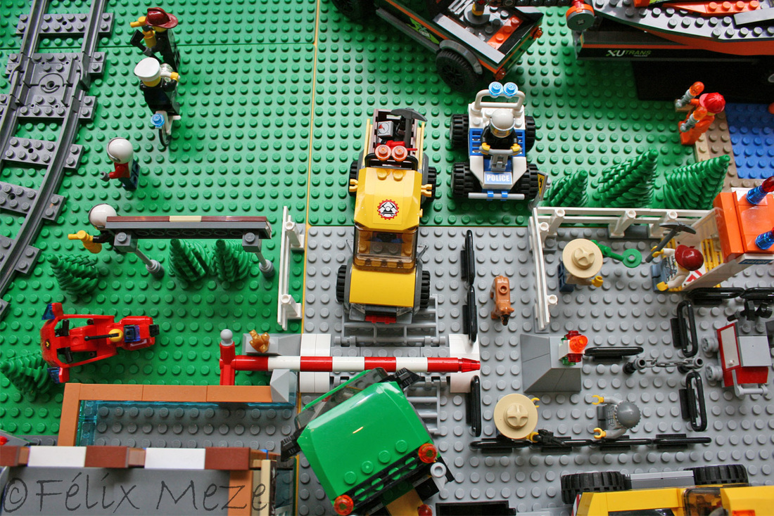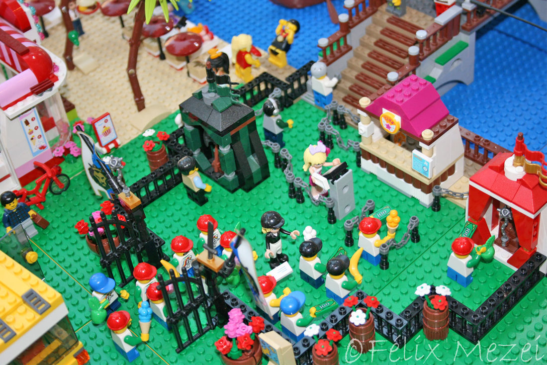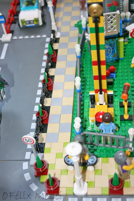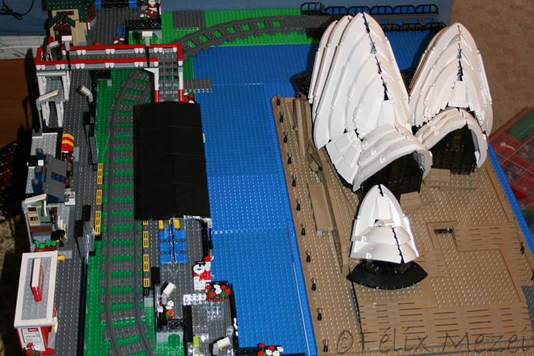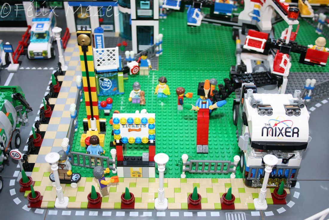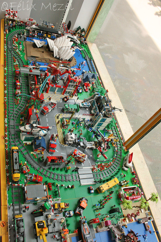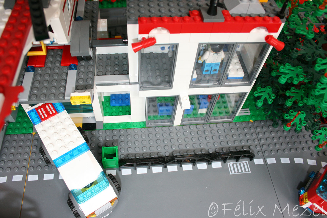 The Town comprises a personal creation of a train station, an official LEGO set train station, a city centre with the police station, fire department, hospital, four different houses, a fun-playground area and a campsite by the beach. All of these are crossed by a motorized bullet-train.