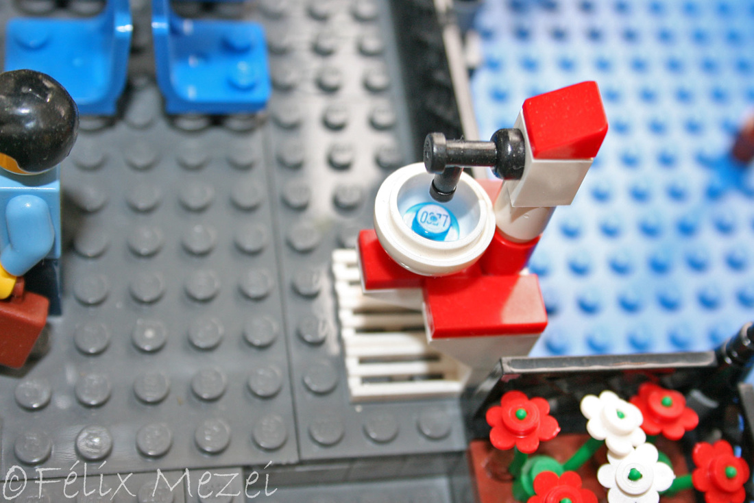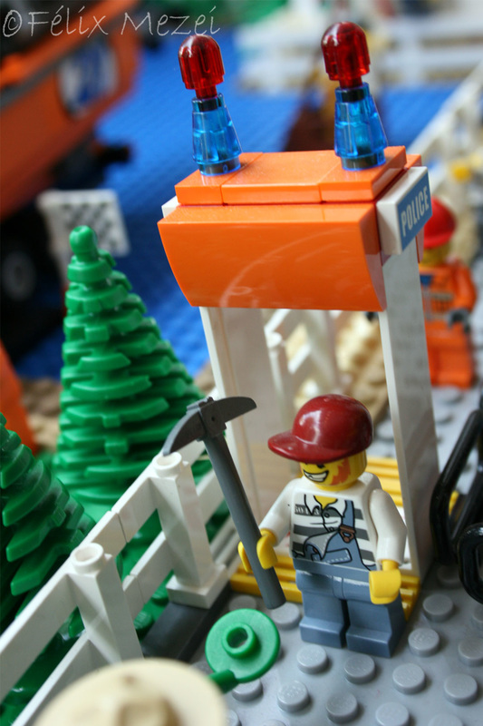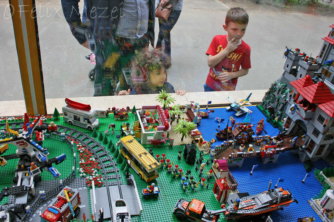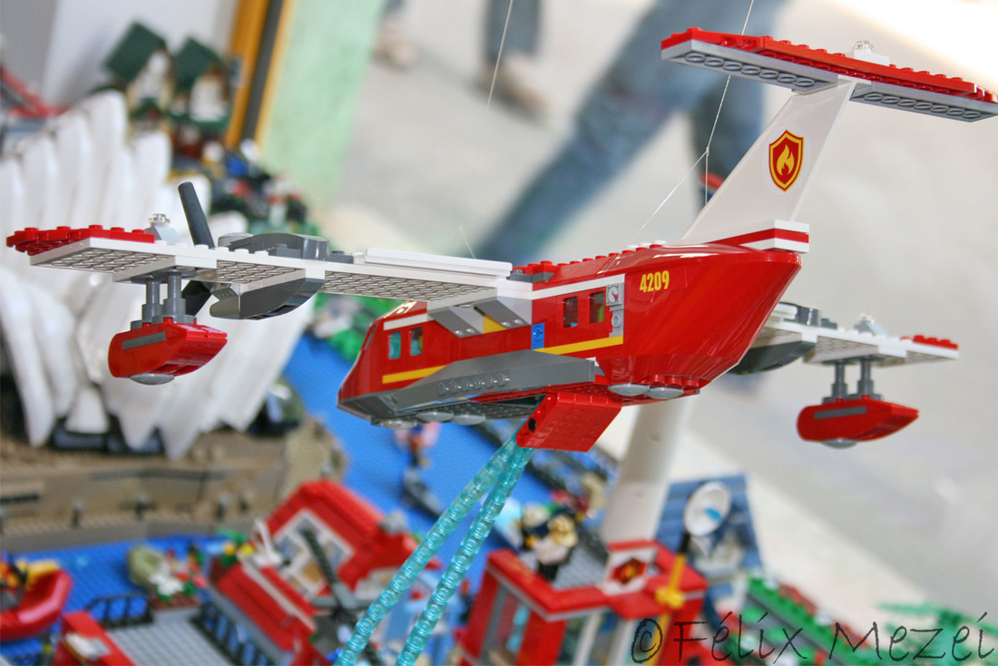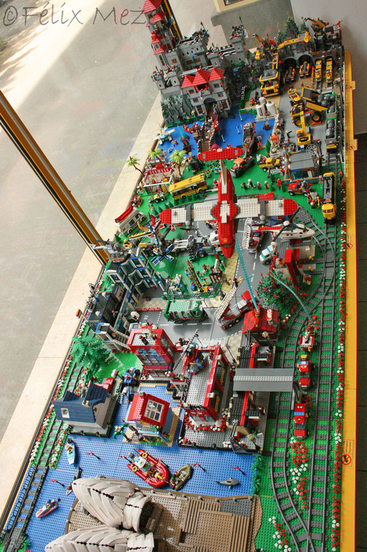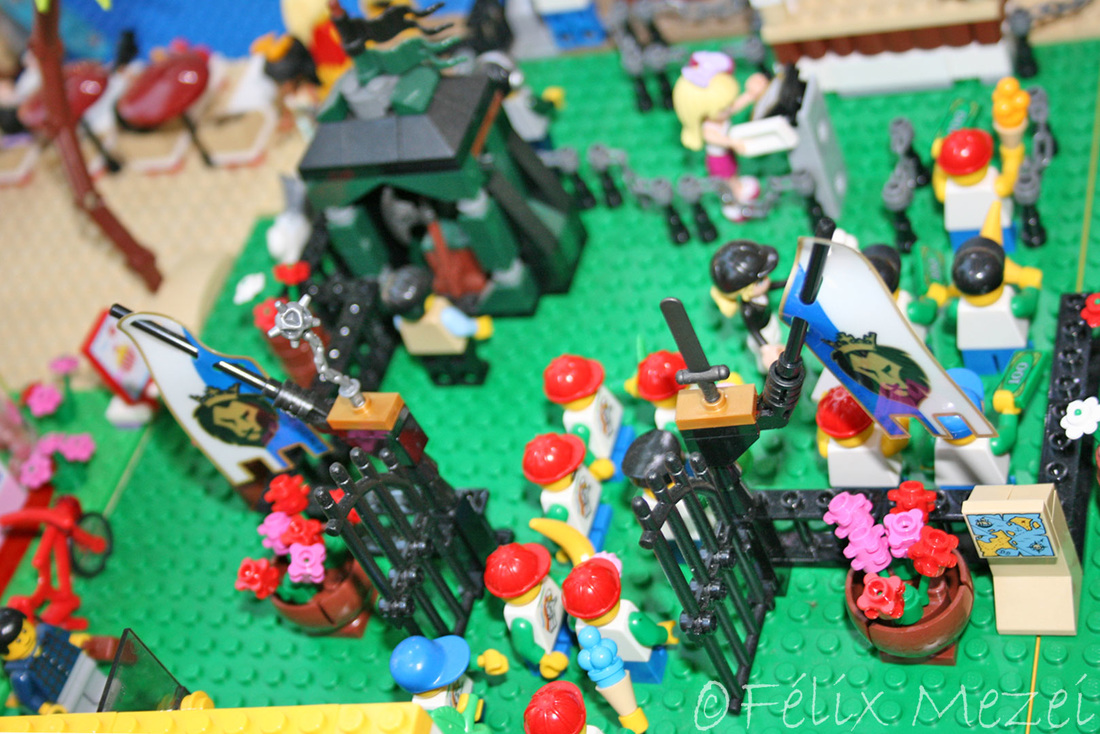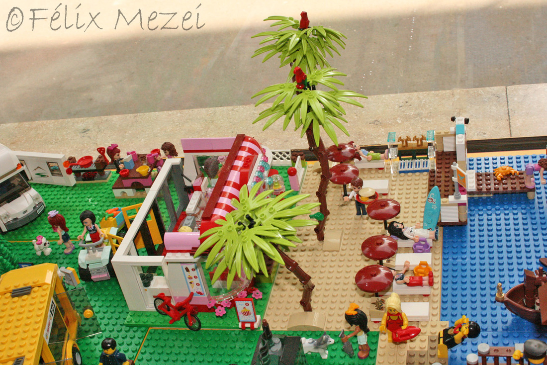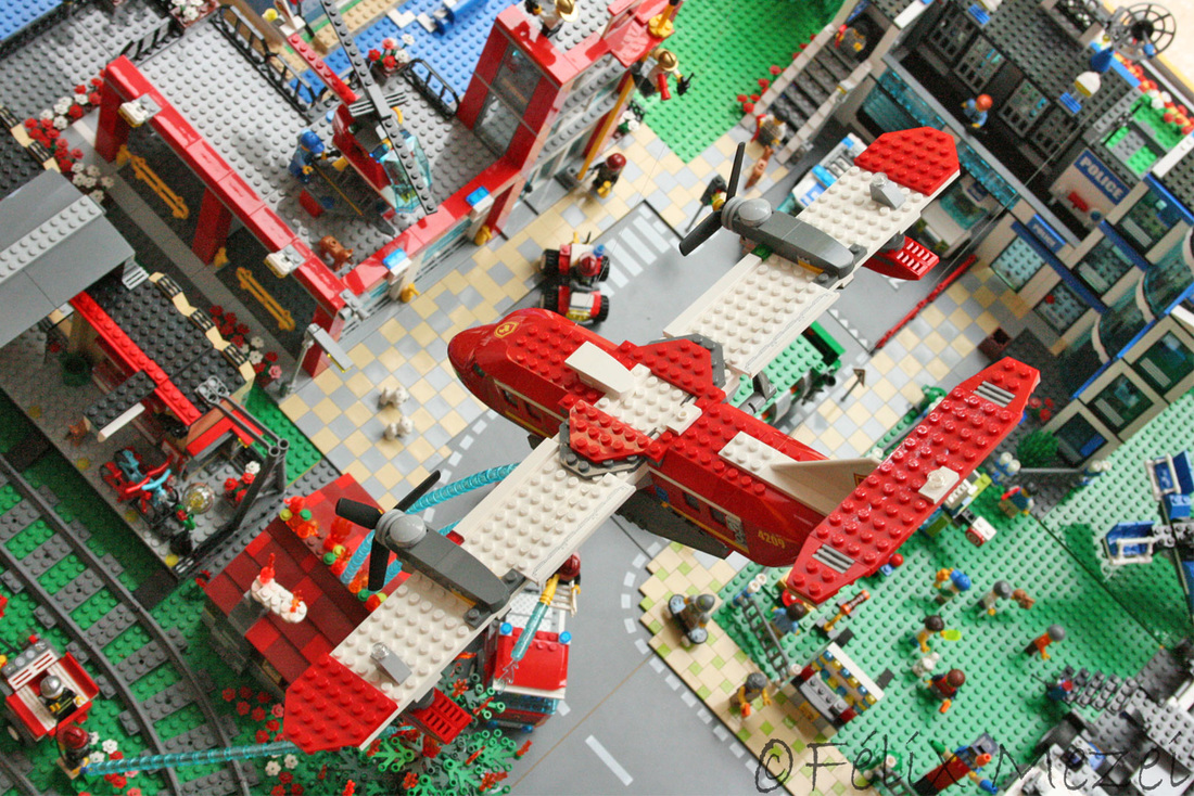 The Town comprises a personal creation of a train station, an official LEGO set train station, a city centre with the police station, fire department, hospital, four different houses, a fun-playground area and a campsite by the beach. All of these are crossed by a motorized bullet-train.