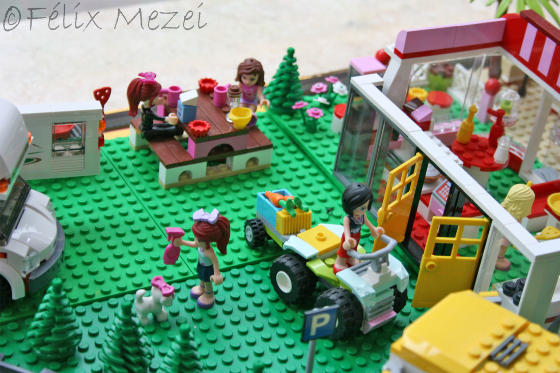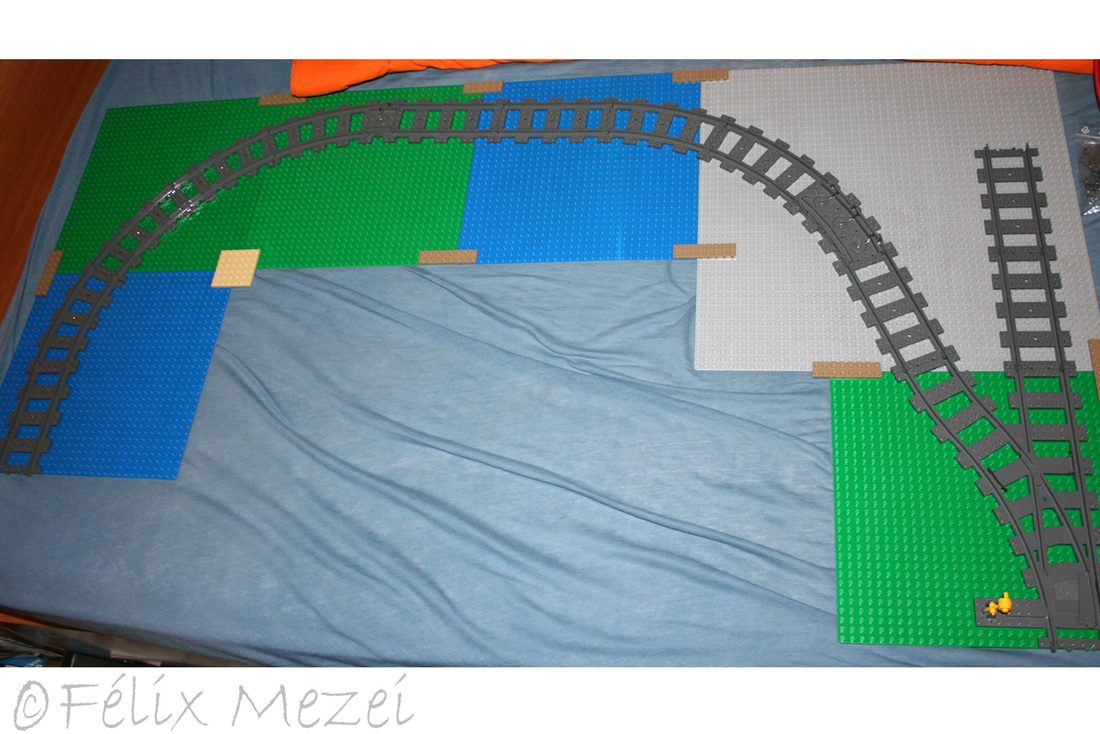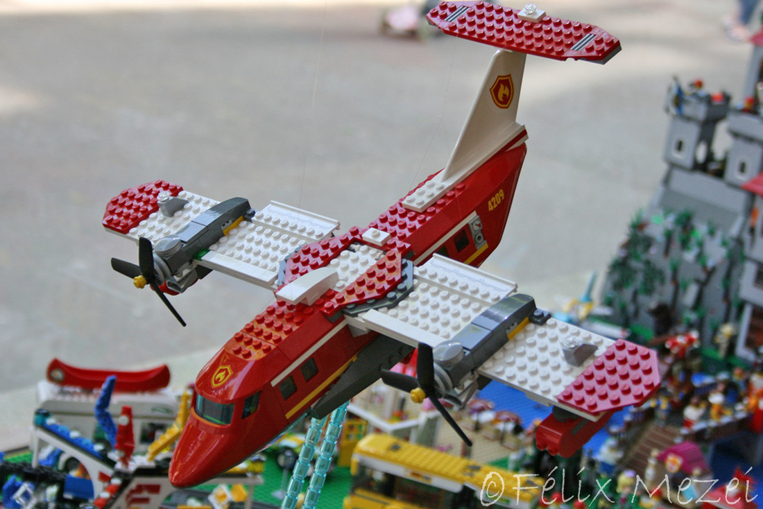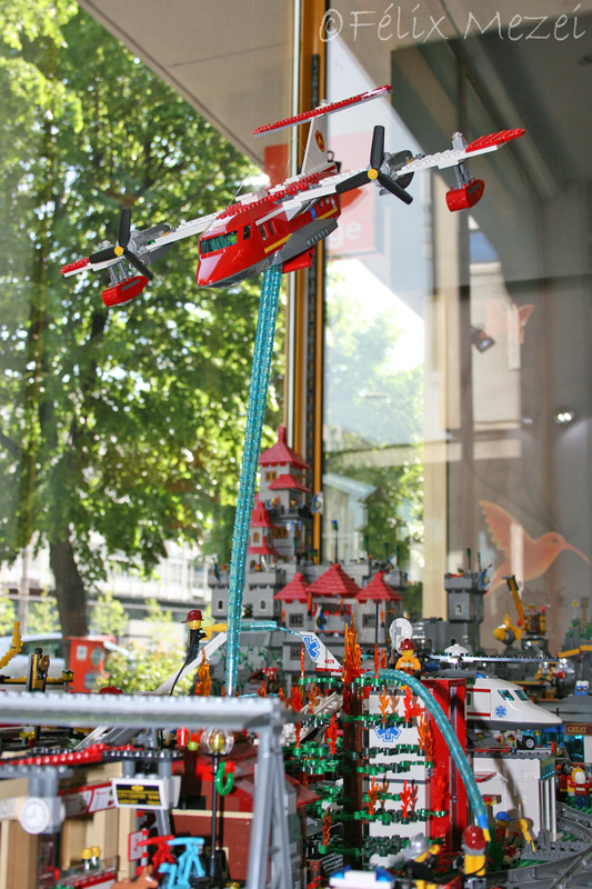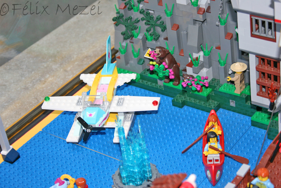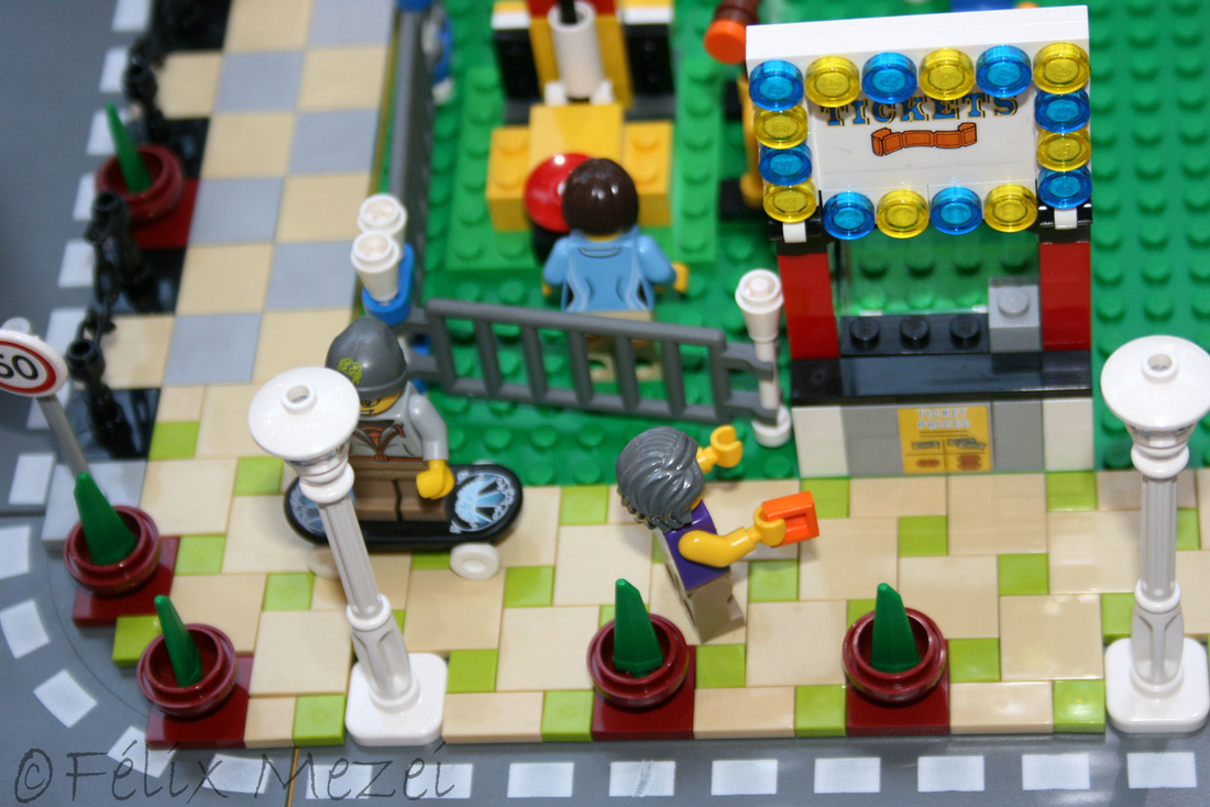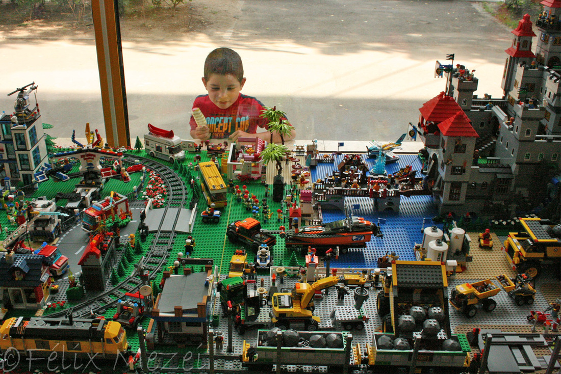 The Town comprises a personal creation of a train station, an official LEGO set train station, a city centre with the police station, fire department, hospital, four different houses, a fun-playground area and a campsite by the beach. All of these are crossed by a motorized bullet-train.