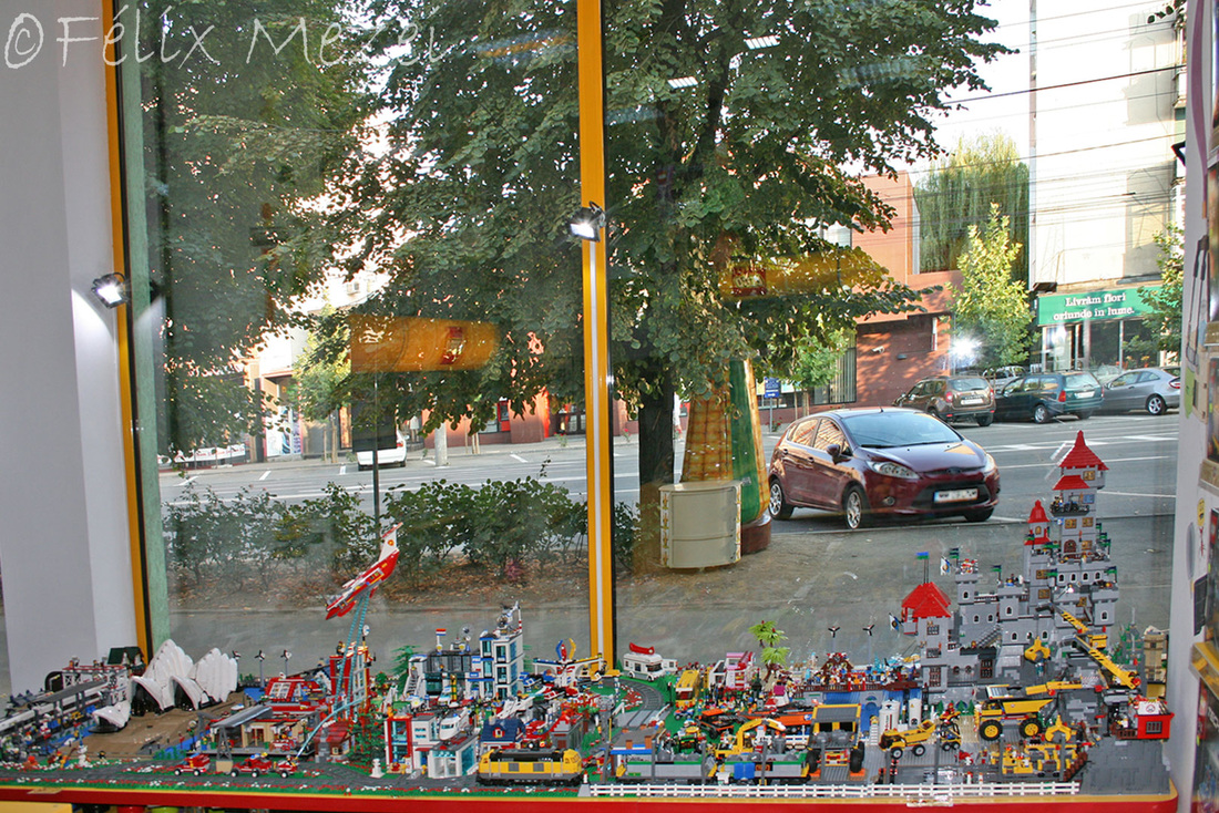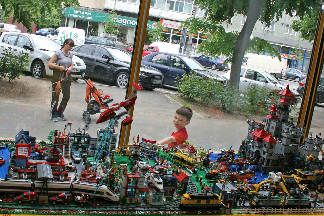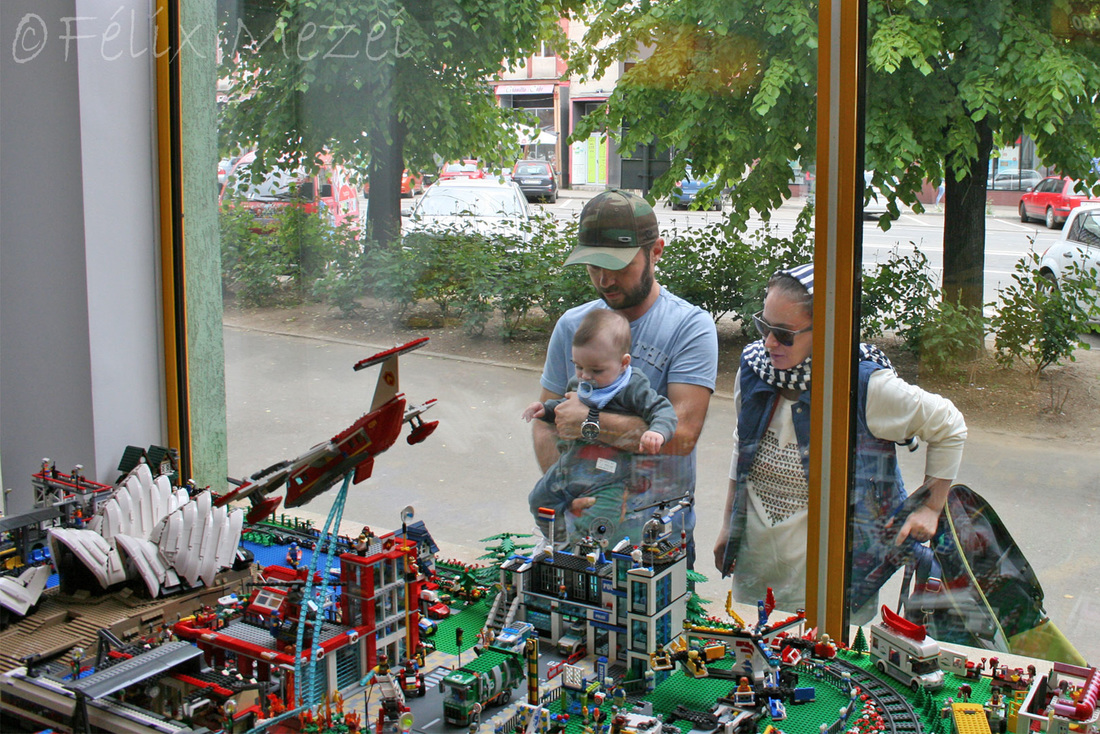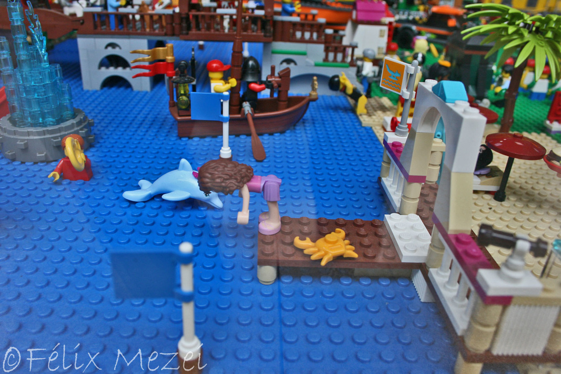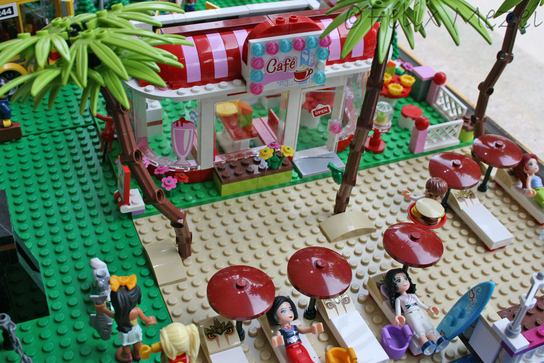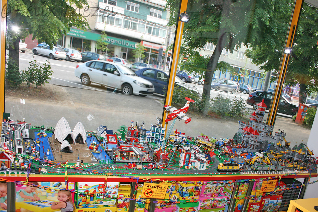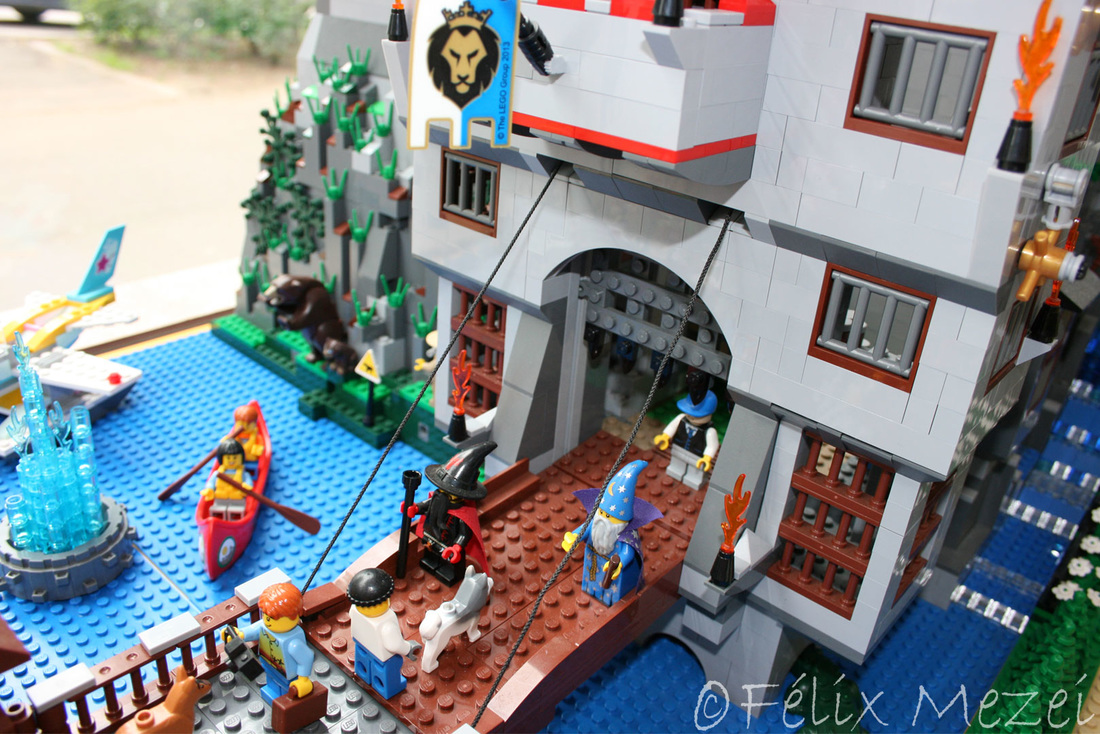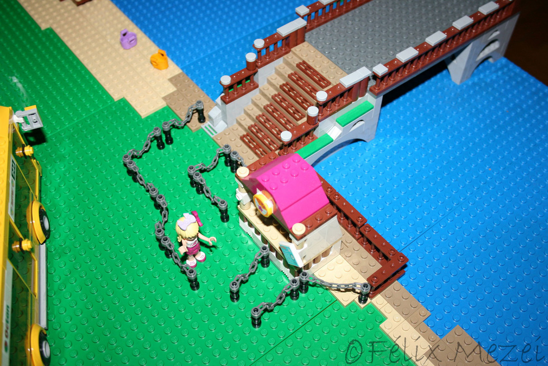 The Town comprises a personal creation of a train station, an official LEGO set train station, a city centre with the police station, fire department, hospital, four different houses, a fun-playground area and a campsite by the beach. All of these are crossed by a motorized bullet-train.