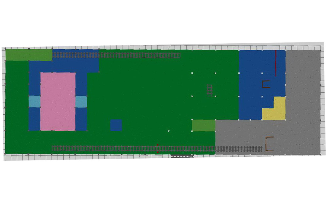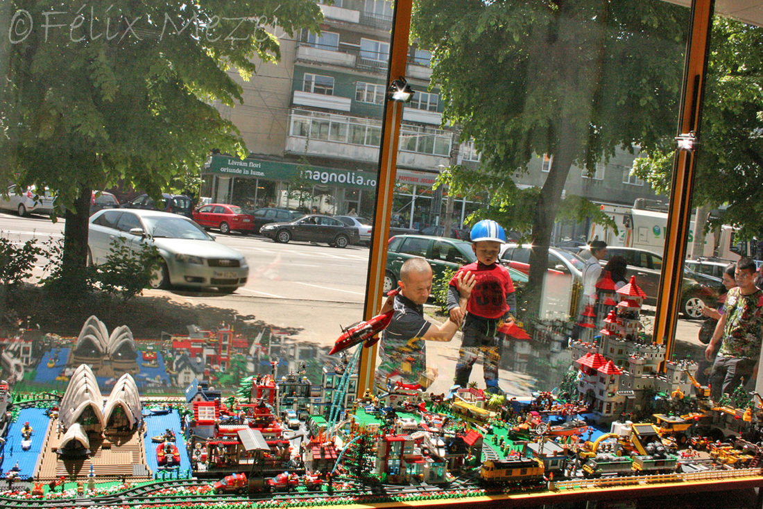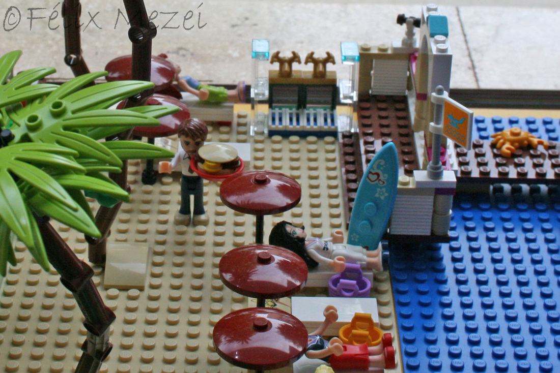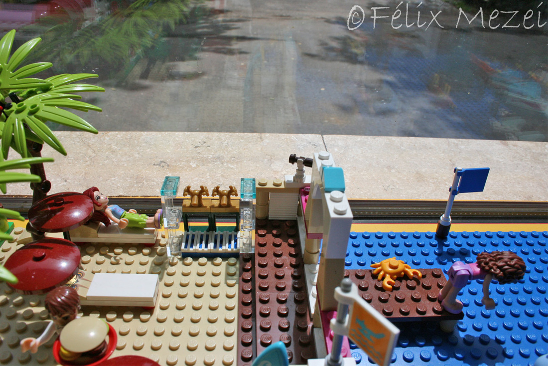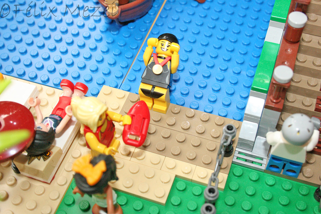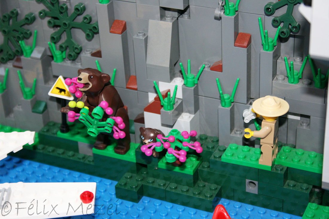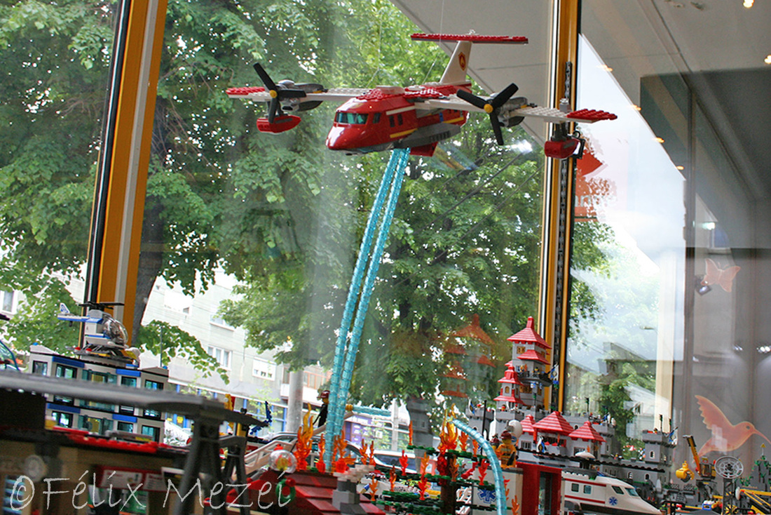 The Town comprises a personal creation of a train station, an official LEGO set train station, a city centre with the police station, fire department, hospital, four different houses, a fun-playground area and a campsite by the beach. All of these are crossed by a motorized bullet-train.