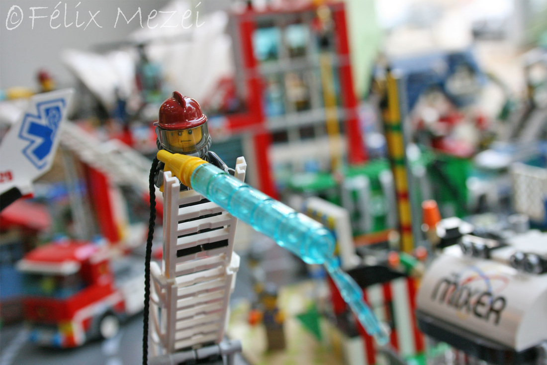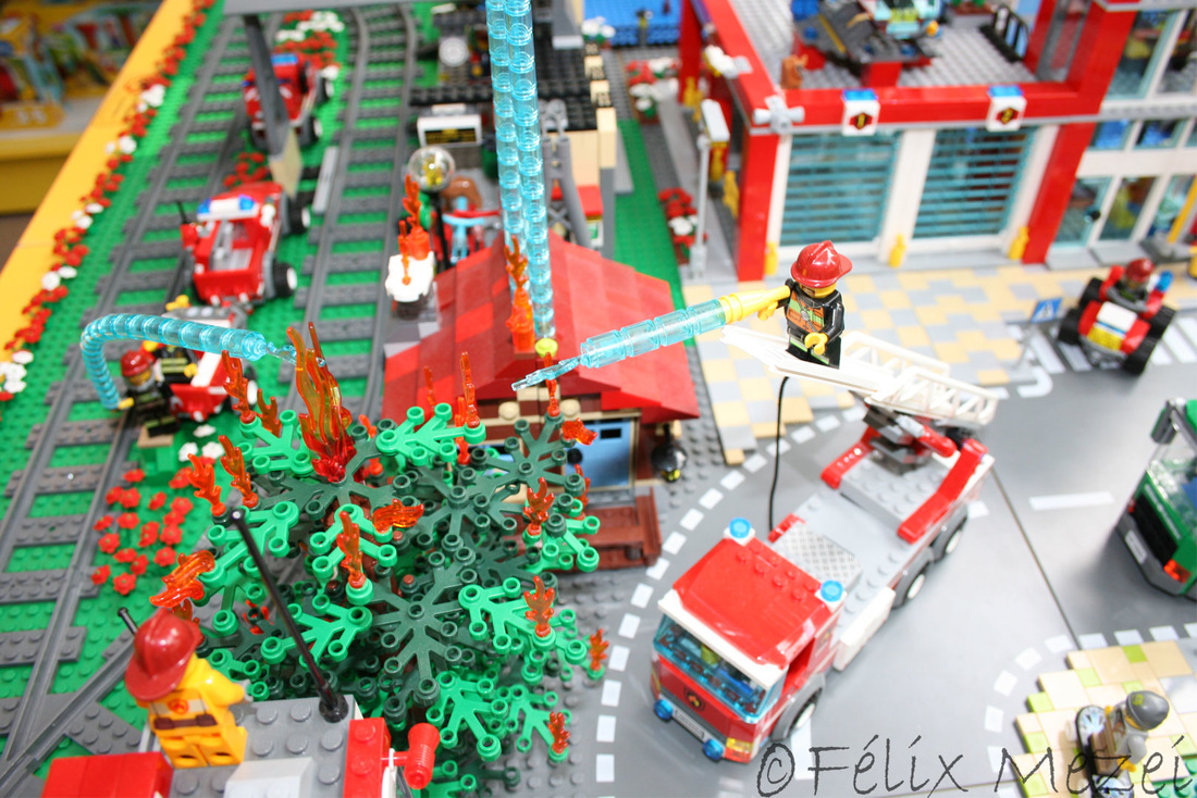 Unfortunately, one day after setting the town up, a fire broke out in the center. What we did, you will see in the “Firefighters” gallery….